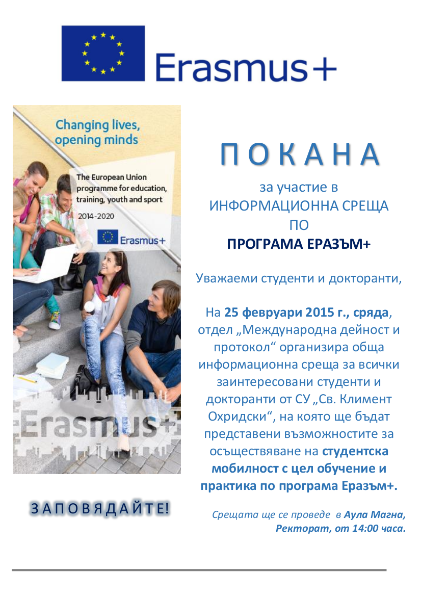 На 4-ти март системата за кандидатстване по програма Еразъм+ ще бъде отворена. Какви изисквания трябва да покривате: Да бъдете записани в ОКС Бакалавър или ОКС Магистър. Да имате завършени мин. два семестъра от следването си в ОКС Бакалавър. Да владеете езика, на който ще се провежда обучението, съгласно изискванията на Прочетете повече…
